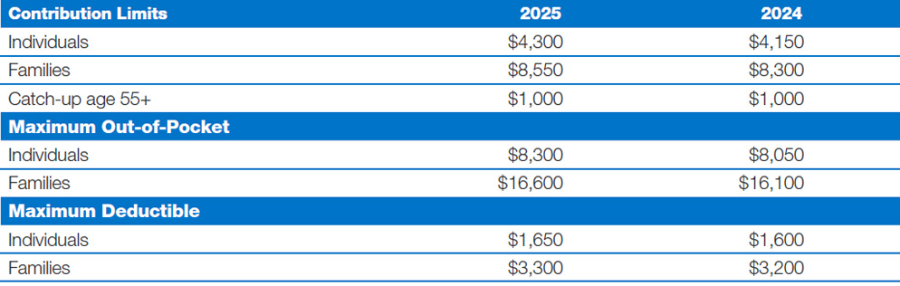 HSA contribution limits for 2025 will also see inflation-adjusted increases. These accounts remain a tax-efficient way to save for healthcare costs. The 2025 inflation adjusted indexed numbers for Health Savings Accounts (HSAs) are: