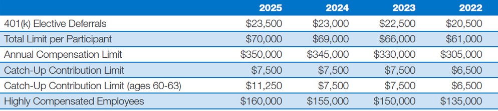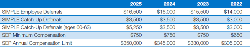 To learn more, click here to view our document on 2025 Retirement Contribution limits.