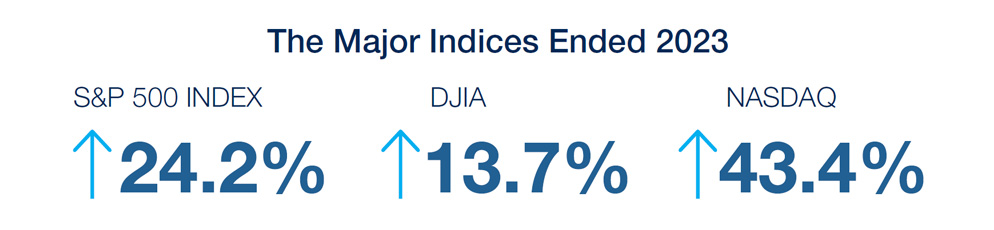 Better than expected…2023 was a year in which the economy and the equity markets performed much better than expected. We ended the year with an “Everything Rally,” all markets up, and key leading economic indicators positive. Not so for our financial performance, but more on that later. While the Federal Reserve continued raising short term rates this past year to a 22-year high of 5½%, inflation began to come under control, and by year-end was reduced from 9.1% in June of 2022 to 3.4% in December of 2023, seemingly well on the way to the Fed’s announced goal of 2%. At the same time, the unemployment rate ended the year at 3.7%, proving that the Fed can end the era of low rates and Quantitative Easing without causing a recession. We believe the Fed is within reach of its post-pandemic normalization process and will begin cutting rates by mid-year 2024, which should provide an acceptable cost of capital for both companies and individuals to successfully achieve their near-term financing goals.