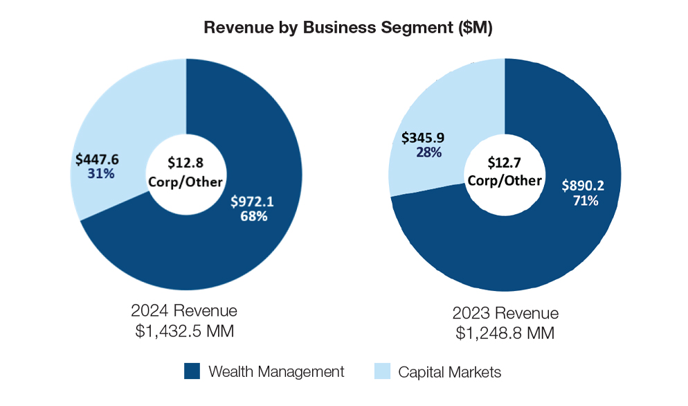 Wealth Management reported revenue of $972.1 million for the year ended December 31, 2024, 9.2% higher compared with the prior year