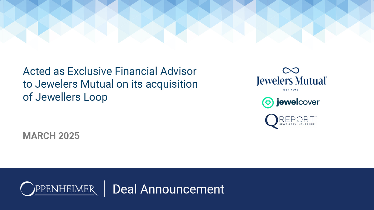 Oppenheimer & Co. Inc. acted as Exclusive Financial Advisor to Jewelers Mutual on its acquisition of Jewellers Loop